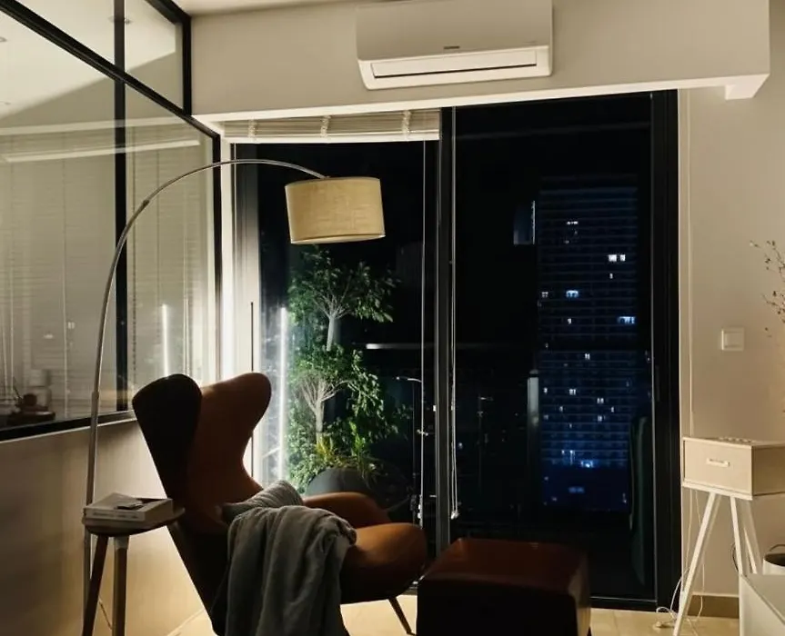 The property has a balcony, a living room, and a fully equipped kitchen, and comforts such as air conditioning.